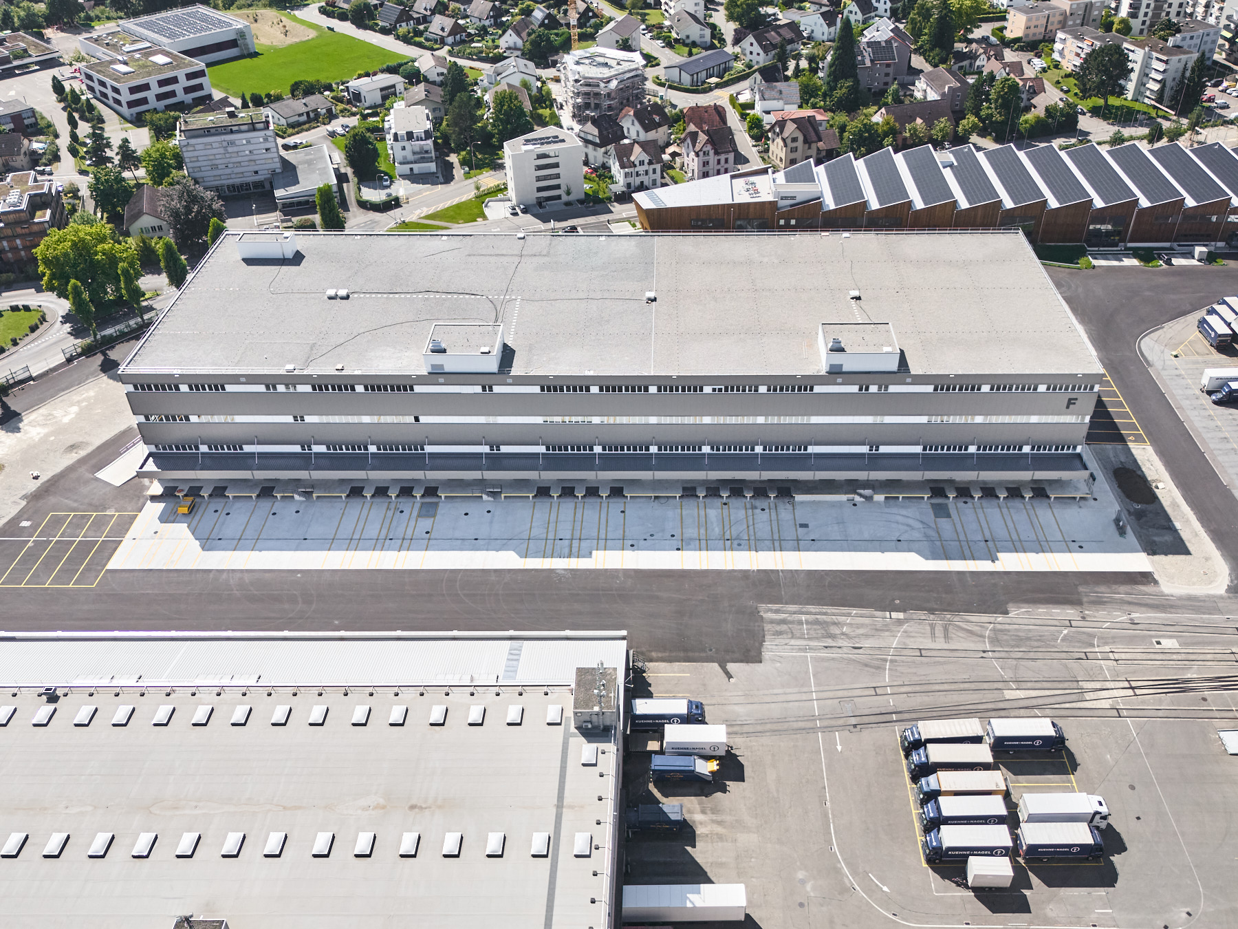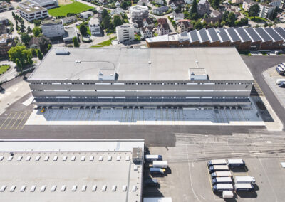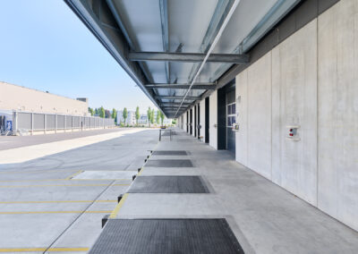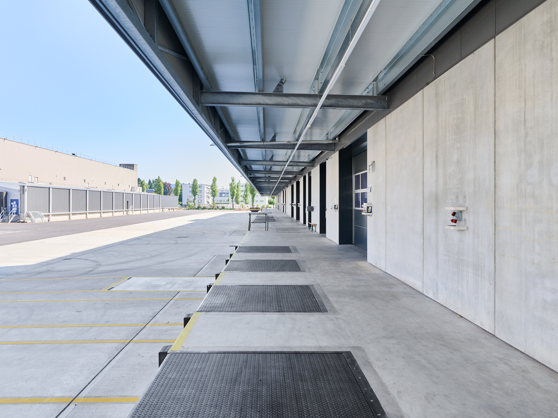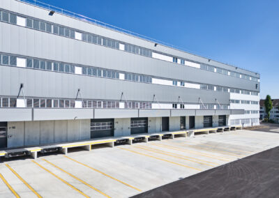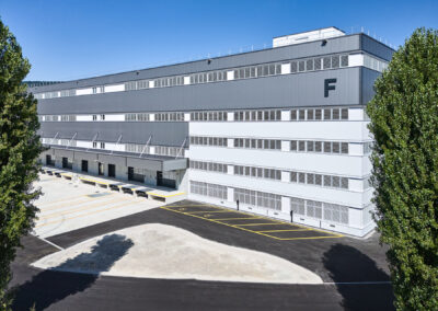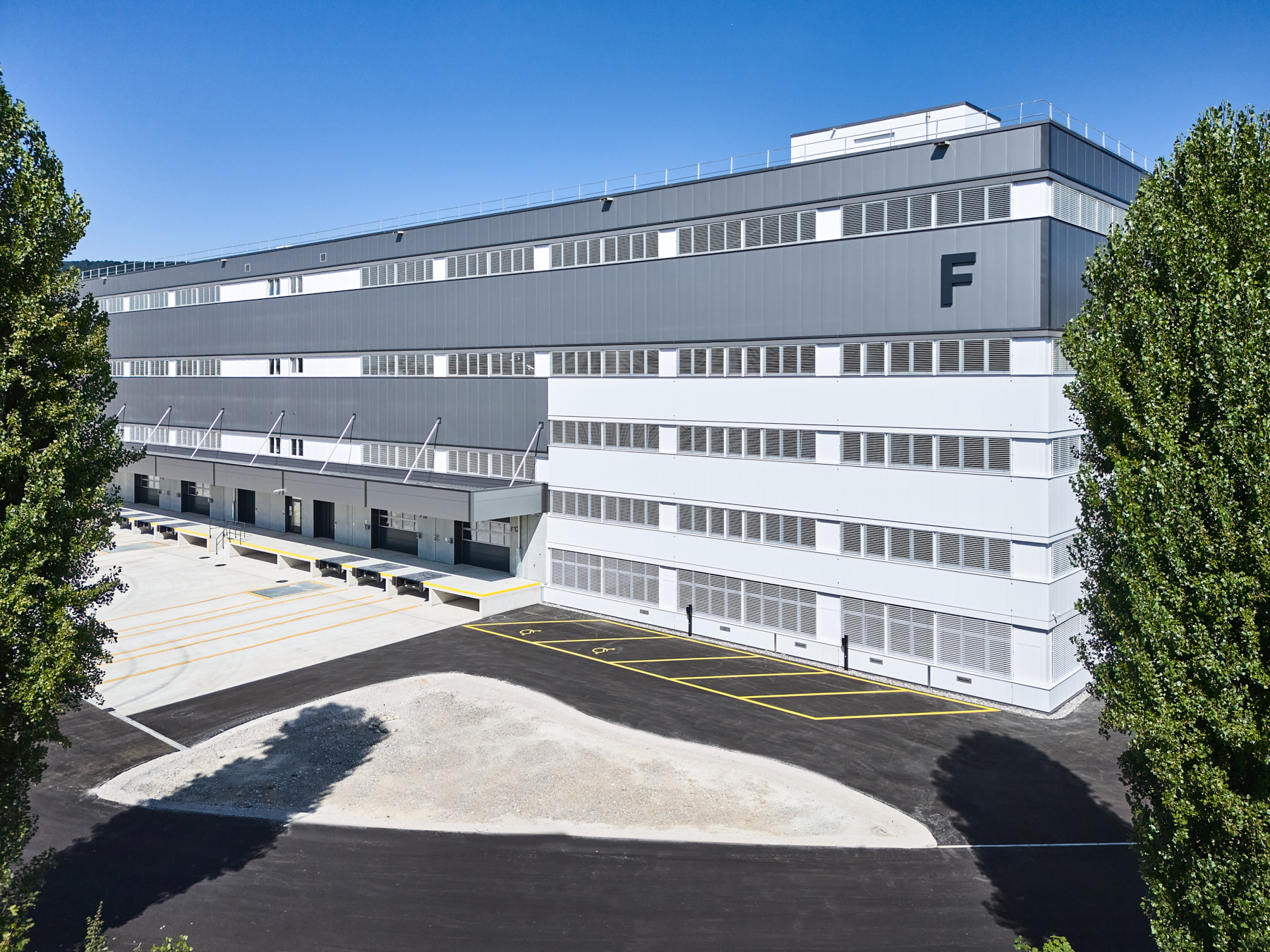 Entstanden ist ein Ersatzneubau für die bestehende Logistikhalle F, die zuvor rückgebaut wurde. Der Neubau besteht aus einem Untergeschoss, Erdgeschoss und zwei Obergeschossen, die als Lagerflächen dienen. Ergänzt wird das Gebäude durch einen fünfgeschossigen Bürotrakt sowie einen Zwischentrakt im Erdgeschoss für Büro- und Verwaltungsnutzung.