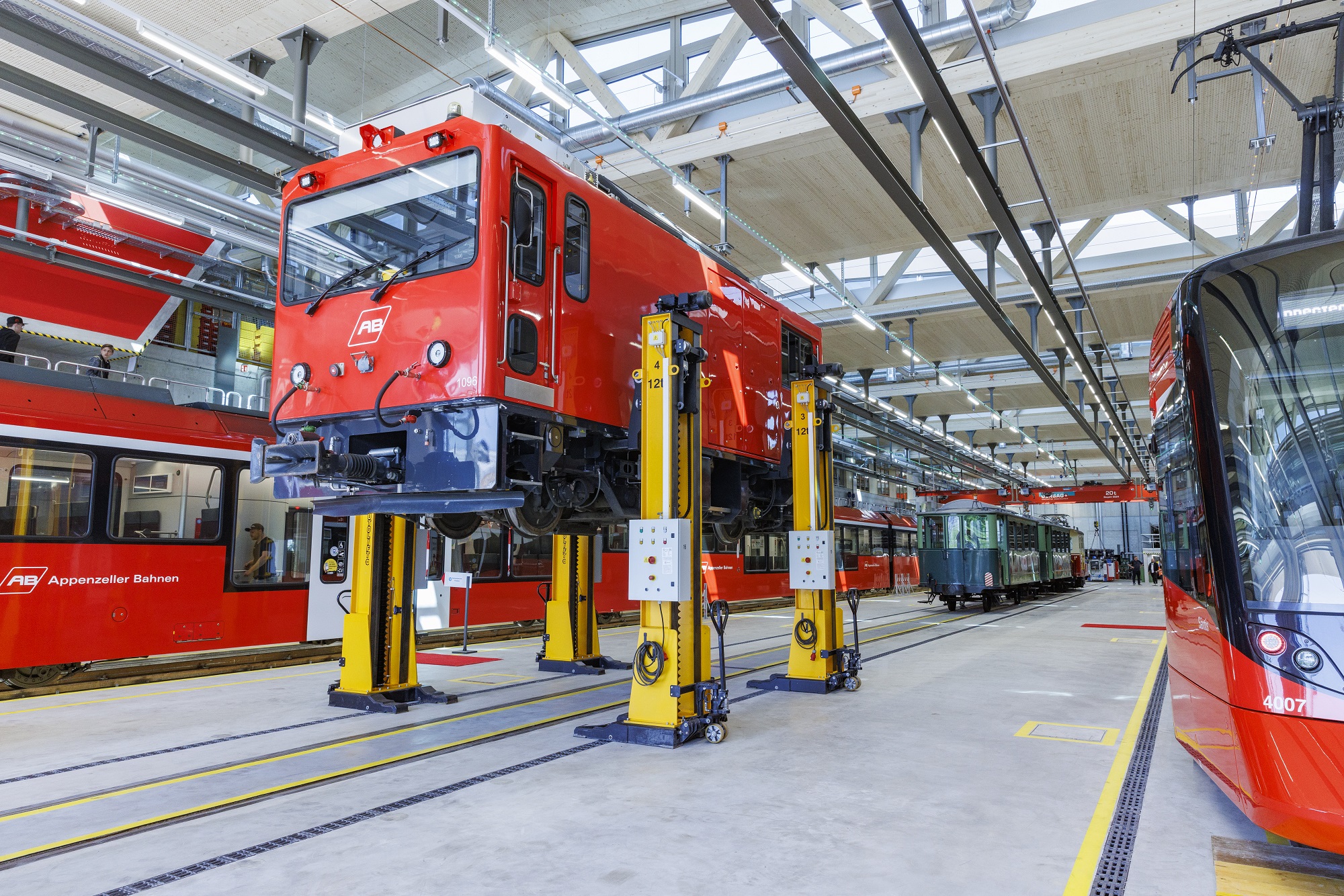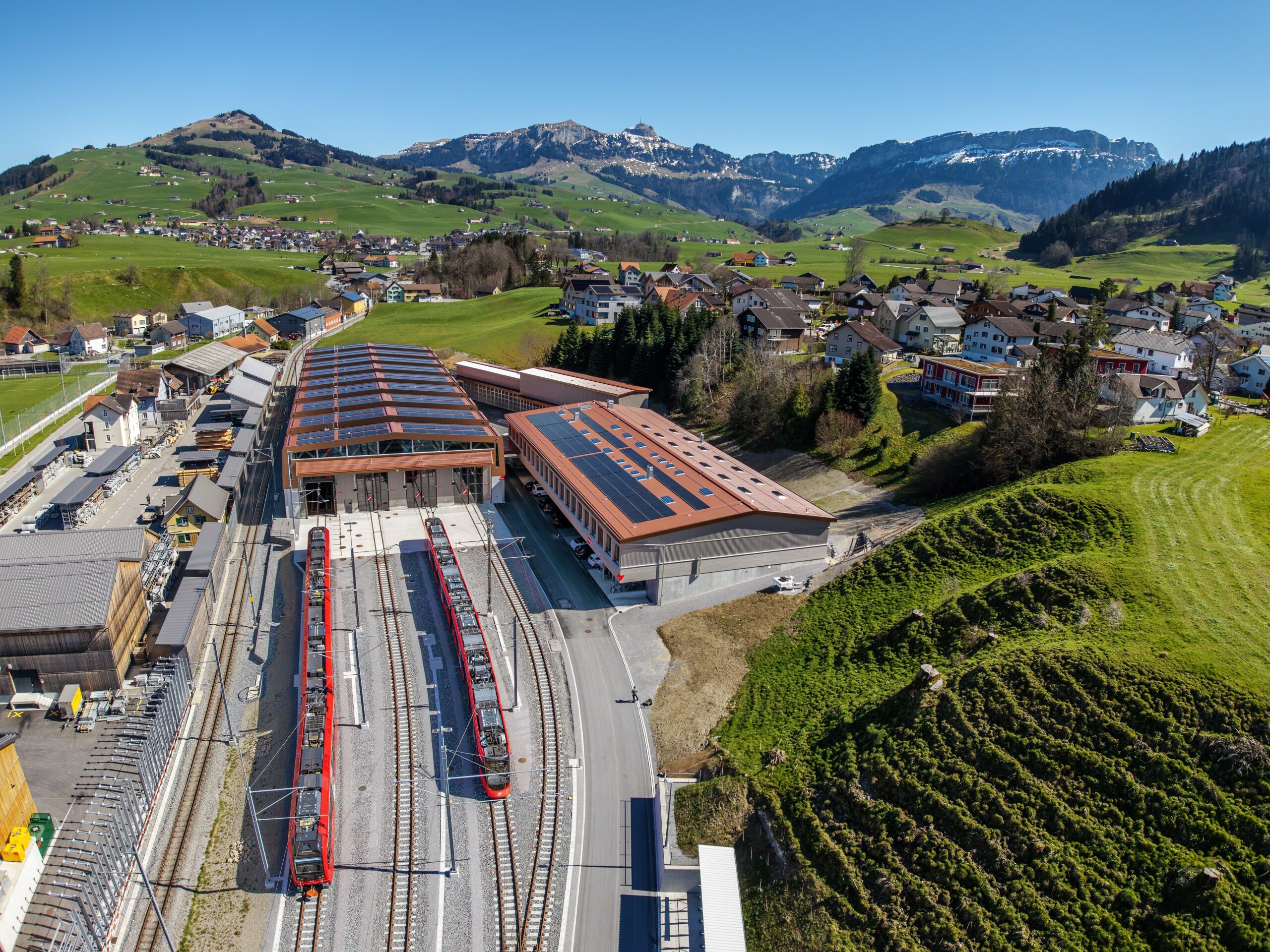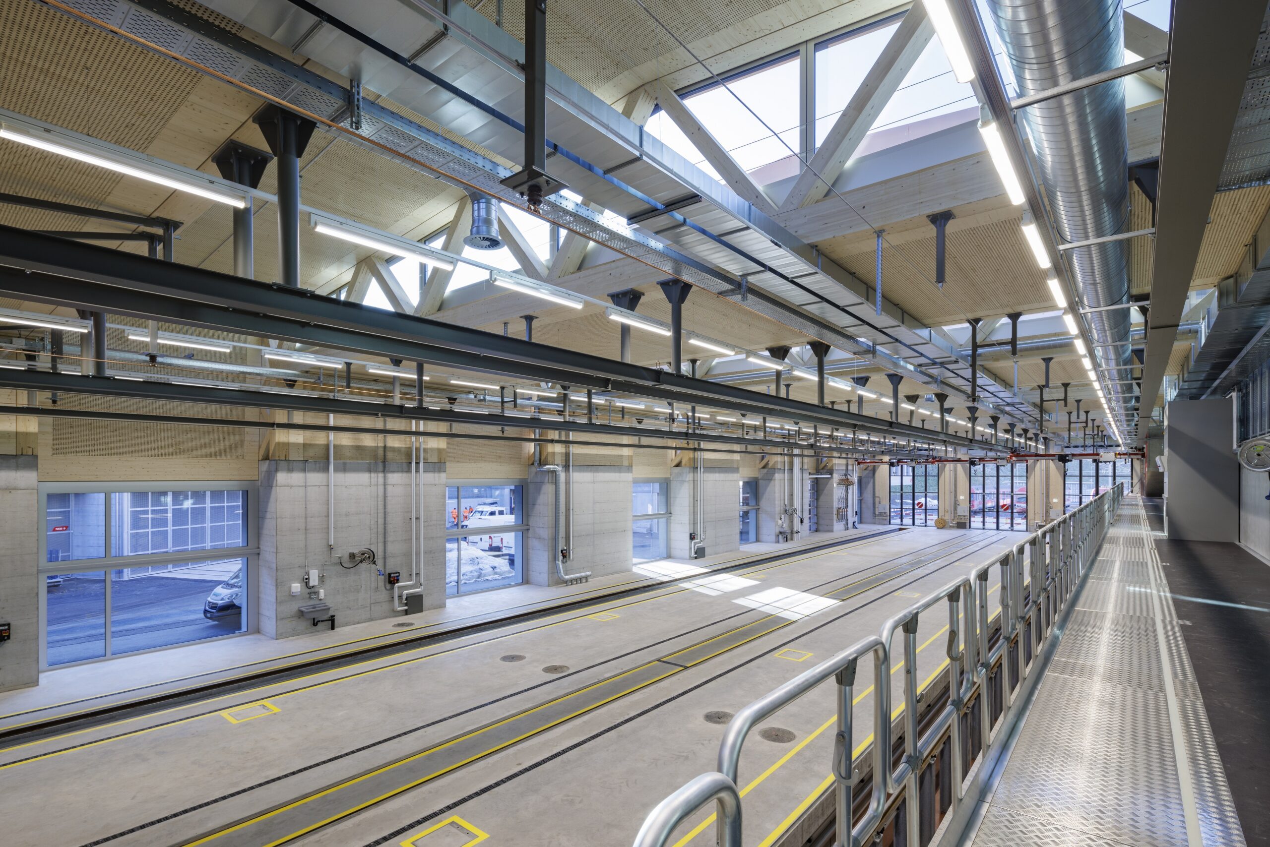 Das Bauprojekt Servicezentrum umfasst drei Einzelbauten: das Verkehrsgebäude, das Infrastrukturgebäude und das Nebengebäude. Die stützenfreie Verkehrshalle wurde mit Holzfachwerkträgern überspannt und bietet Platz für die Wartung von vier Zugkompositionen. Im Infrastrukturgebäude sind Büroräume, ein Hochregallager sowie eine unterirdische Einstellhalle untergebracht. Im Nebengebäude befinden sich Werkstätten, Büros, Aufenthaltsräume und Parkplätze. Umweltverträglichkeit und Nachhaltigkeit spielen bei diesem Projekt eine zentrale Rolle.